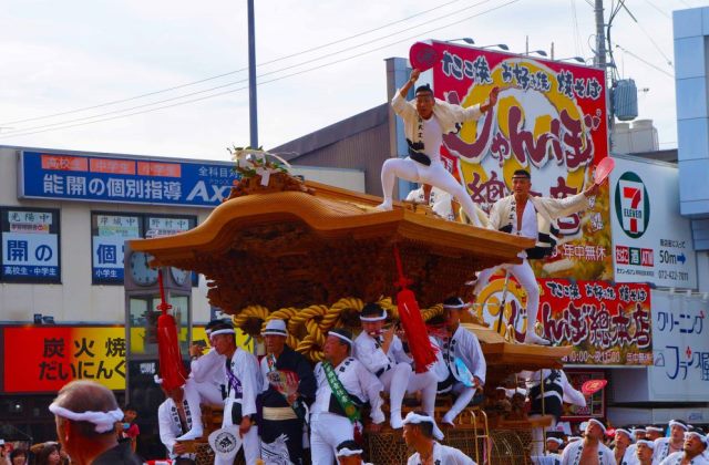Фестиваль Кисивада Дандзири впервые состоялся в 1703 году, когда даймё (феодальный владыка) замка Кисивада Окабэ Нагаясу молился богам Синто за обильный урожай. Сегодня фестиваль имеет репутацию самого дикого и смелого мероприятия Осаки. Местные ребята пытаются доказать свою храбрость и смелость, танцуя на крышах 35 платформ, известных как «дандзири», которые шествуют по улицам. Все платформы имеют искусно разработанную конструкцию, собраны вручную и весят более 3000 кг. Самая захватывающая часть гиперпарада, когда платформы движутся под углом 90 градусов.