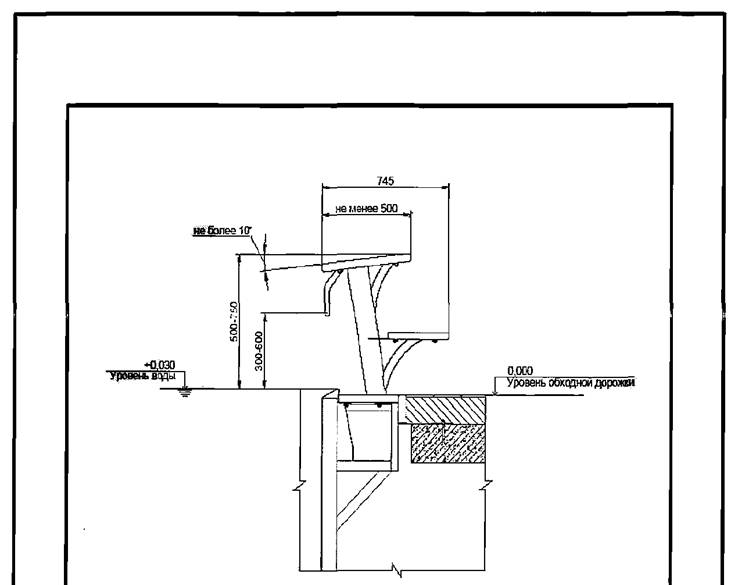 2.9. Обходные дорожки и стационарные скамьи должны обогреваться. Поверхность обходных дорожек должна быть не скользкой и иметь уклон 0,01 - 0,02 в сторону трапов.